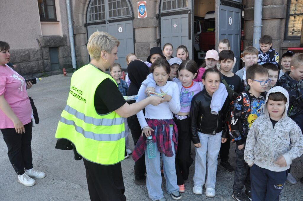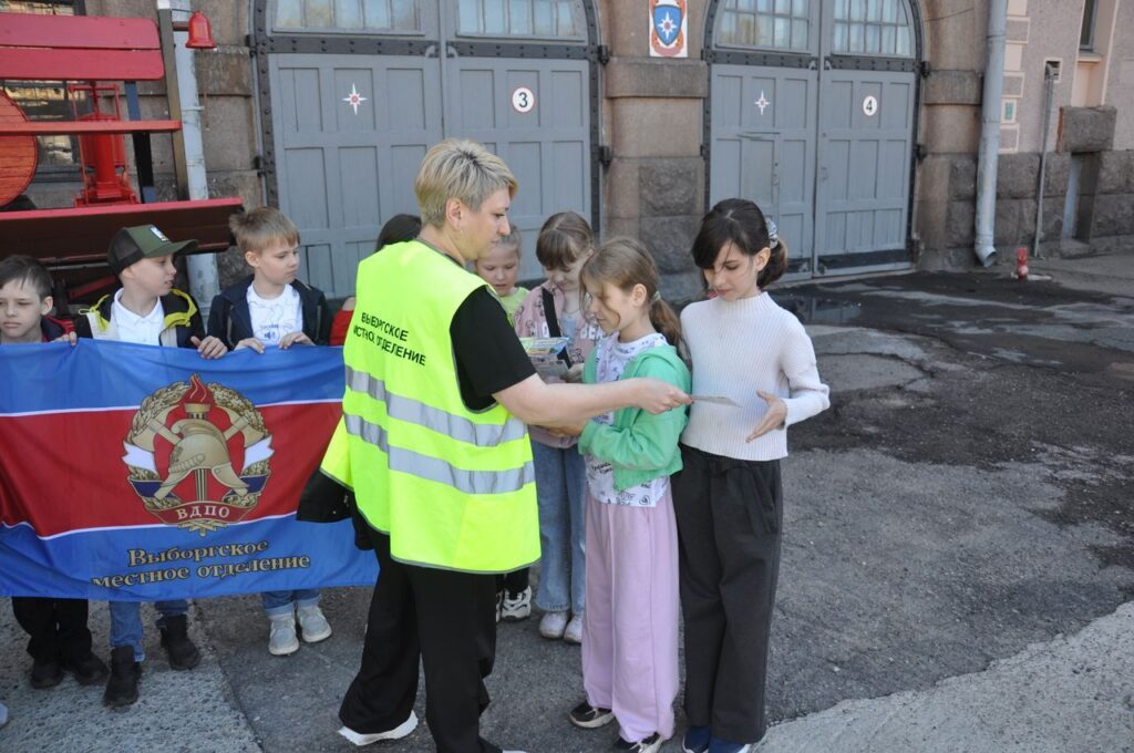 Представитель Выборгского МО ВДПО ЛО раздал детям памятки и напомнил номера экстренных служб.