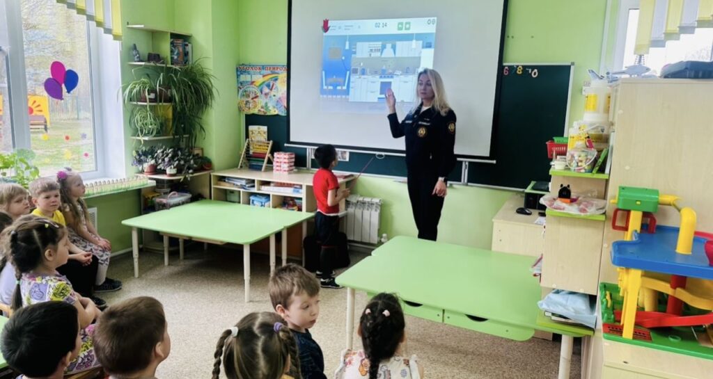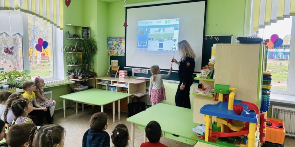 После церемонии награждения, сотрудники Тосненского местного отделения ВДПО ЛО и отдела надзорной деятельности и профилактической работы Тосненского района, а также инструктор противопожарной профилактики пожарной части № 111 им. Е.В. Рукавишникова провели занятие в разновозрастной группе. Используя ресурс вдпо.рф, ребята активно участвовали в обучающей активности, которая позволила им укрепить и проверить свои знания в области пожарной безопасности. Дети в интерактивной форме искали на экране потенциальные опасности, способные привести к пожару, что способствовало лучшему усвоению материала.
