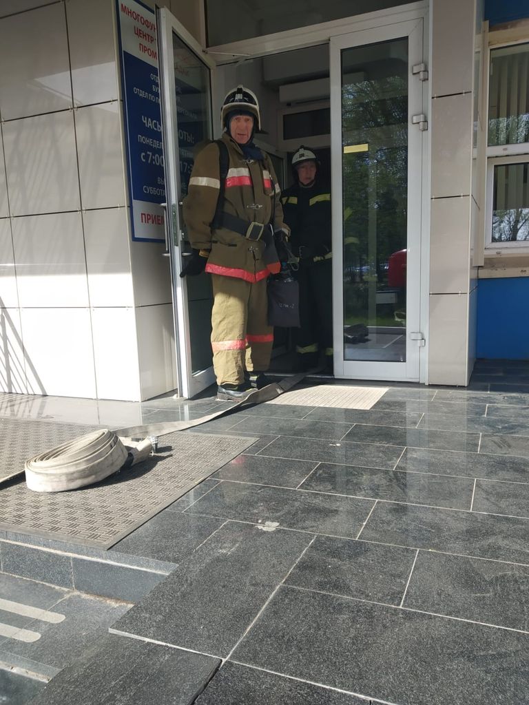 Работники предприятия организованно вышли на улицу. В это время специалисты отдела промышленной безопасности сверили всех со списками. К месту пожара прибыл боевой расчет местного отделения ВДПО ЛО. Добровольные пожарные отработали действия по участию в тушении пожара