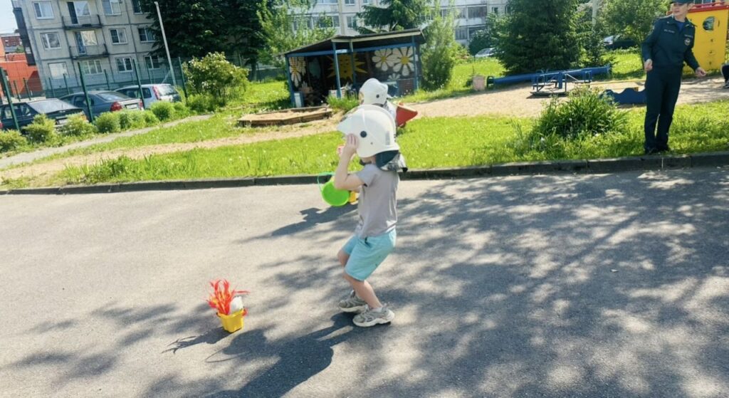 После теоретической части для детей были организованы практические занятия в игровой форме. Ребята разделились на две команды и примеряли на себя роли пожарных. Они тренировались спасать друг друга, отрабатывали навыки эвакуации из условно задымленного помещения и учились пользоваться пожарным оборудованием. Такое практическое занятие позволило детям лучше понять, как действовать в реальной ситуации, и закрепить полученные знания.