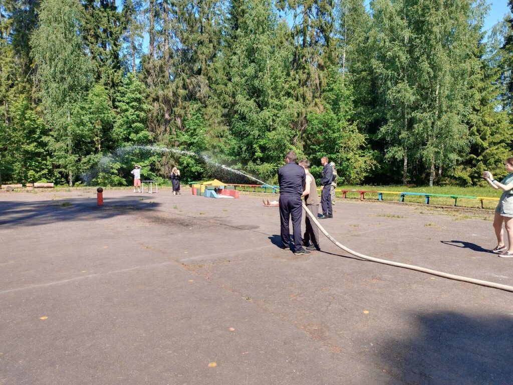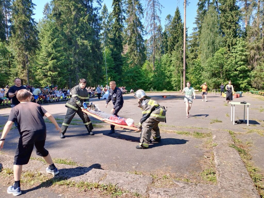 Этот день мы все решили отметить именно как день ЗАЩИТЫ и для ДЕТЕЙ. В детском оздоровительном лагере «Юный Кировце» традиционно отдыхает очень много ребят. Все они в основном приезжают из Санкт-Петербурга. Дети. конечно, заряжены на позитивный отдых. Но нельзя забывать, что отдыхая в лагере, где все корпуса деревянные,1940 года постройки – нельзя не соблюдать правила пожарной безопасности.