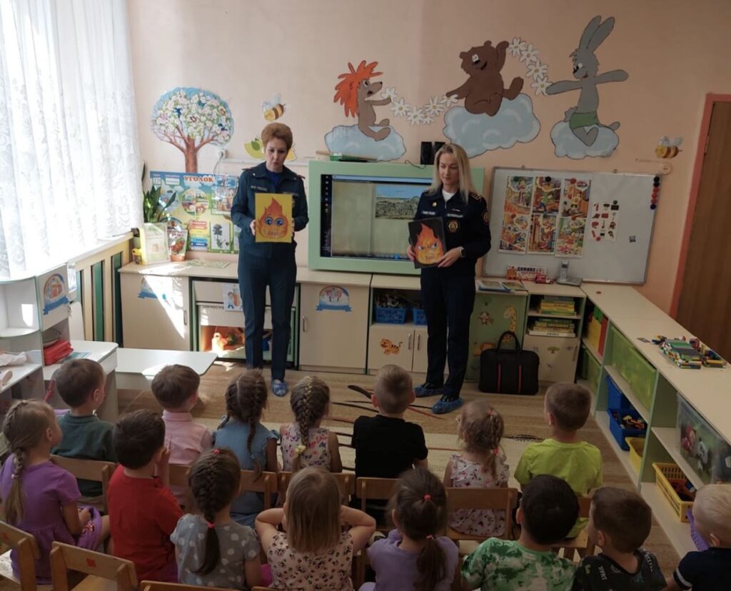 На занятии дети посмотрели мультфильм на противопожарную тематику, что помогло им лучше понять, как вести себя в случае пожара.