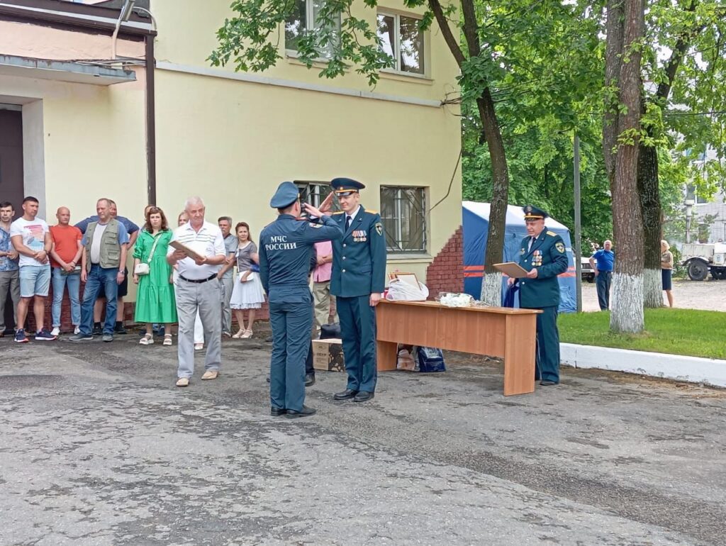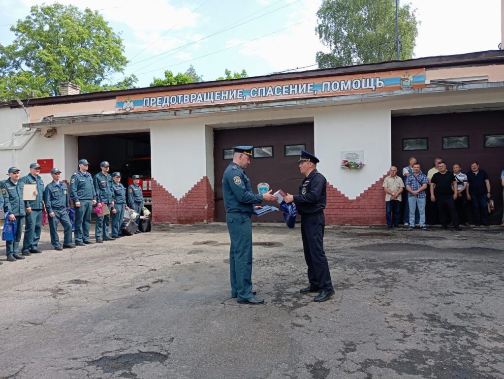 Перед собравшимися выступили начальник отряда Ульяновский Александр Андреевич, ведущий инженер отряда государственной противопожарной службы Миронов Владимир Николаевич, заместитель председателя совета местного отделения ВДПО ЛО Миклин Валерий Николаевич. Они поздравили всех с праздником и вручили сотрудникам почетные грамоты и памятные подарки.