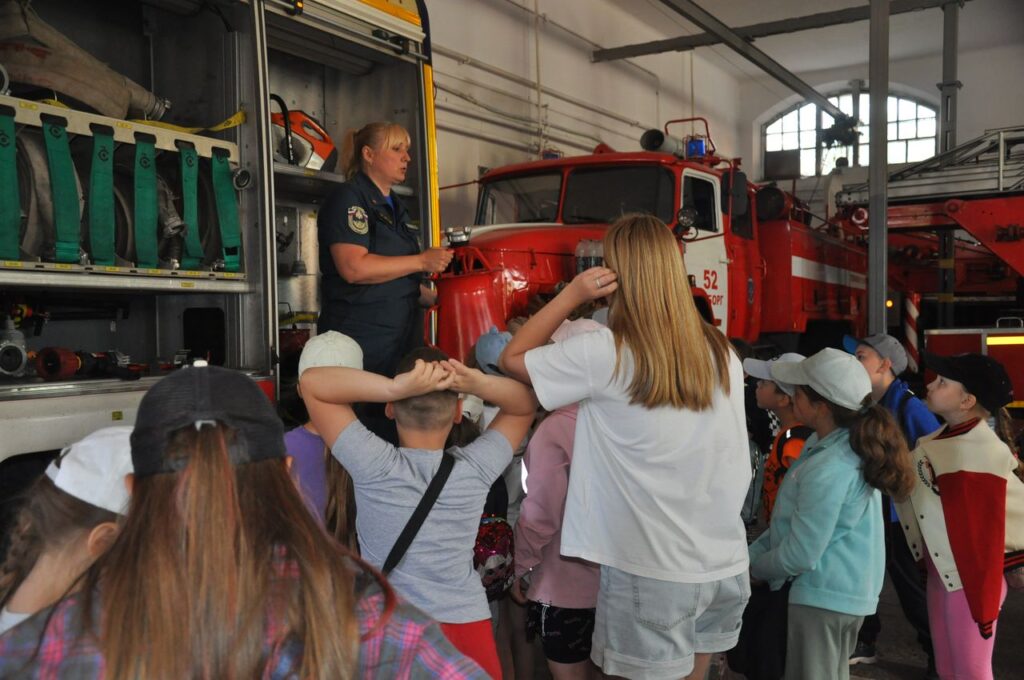 Сотрудники 26 пожарно-спасательного отряда Главного управления МЧС России по Ленинградской области совместно с Выборгским местным отделением Всероссийского добровольного пожарного общества Ленинградской области провели экскурсию в 52 пожарно-спасательной части для учеников 2-3 классов пришкольного лагеря МБОУ «СОШ № 7 города Выборга».