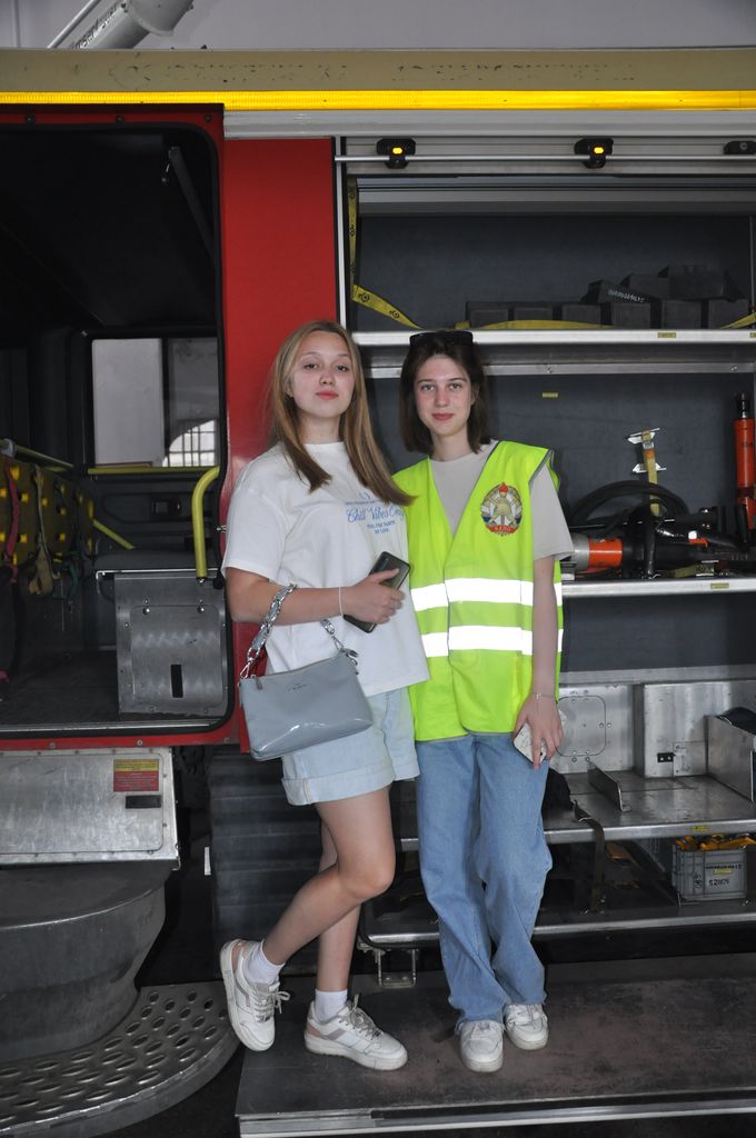 Детей провели по служебным и бытовым помещениям части. Рассказали и показали работу центрального пункта связи. Ребята узнали, где и как работают, тренируются и отдыхают пожарные. Ребята посидели в пожарной машине и примерили боевую амуницию.