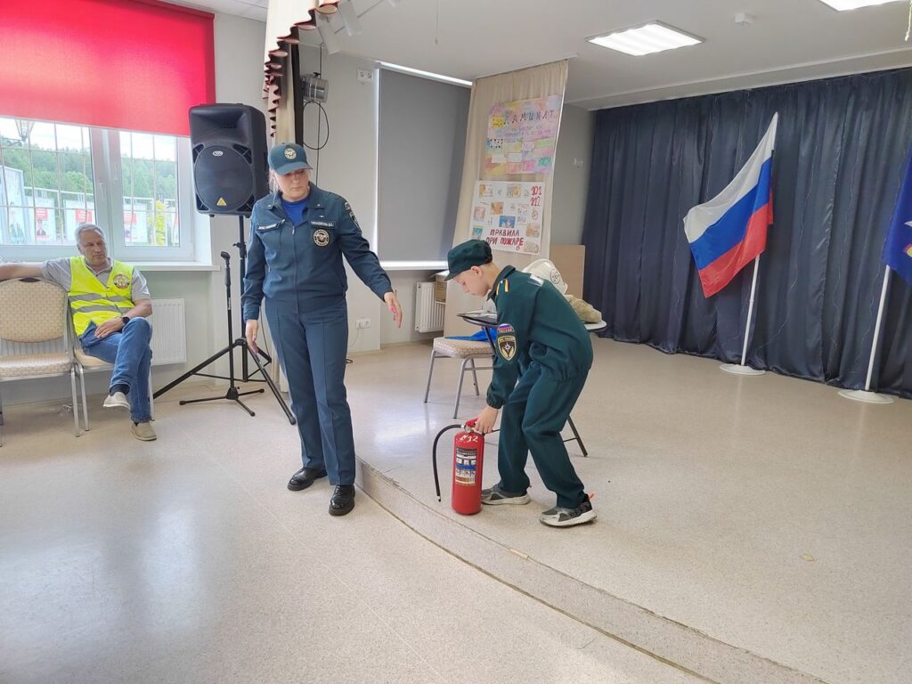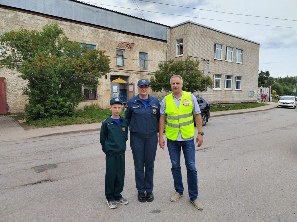 Помощник – юный доброволец Выборгского МО ВДПО ЛО раздал ребятам и работникам Дома культуры памятки по пожарной безопасности и напомнил номера экстренных служб.