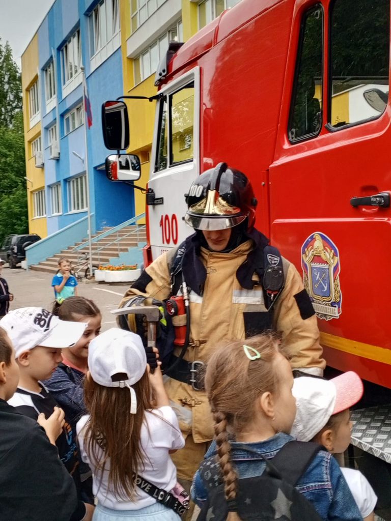 После этого была объявлена пожарная тревога и весь детский лагерь под руководством воспитателей и преподавателей высыпал на улицу, где их встретили бойцы 150 пожарной части отряда государственной противопожарной службы Всеволожского района.