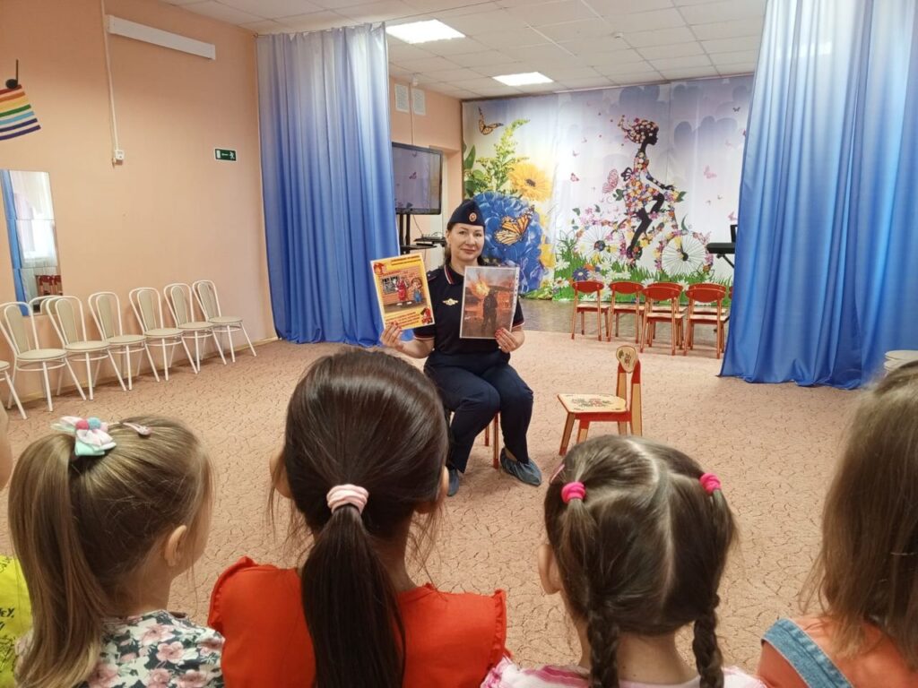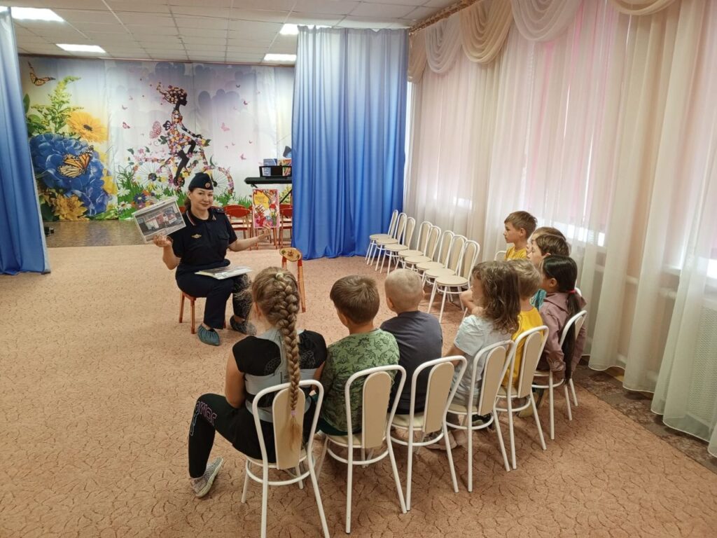 Наталья Габрильянц вела беседу с детьми, а Миклин В.Н. проводил инструктаж о мерах пожарной безопасности с техническим персоналом.