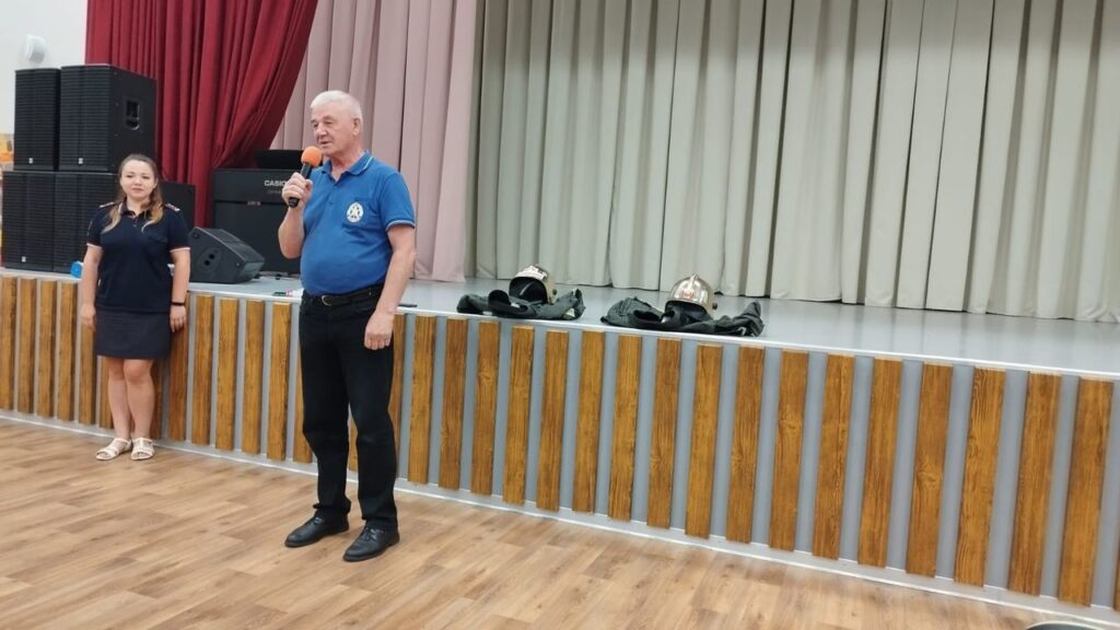 Беседа проходила в актовом зале, где были собраны пять отрядов. Корнева А.В. расспросила ребят, что они знают о пожарной безопасности, об основных причинах пожаров и действиях в случае возникновения чрезвычайной ситуации. Напомнила ребятам о мерах пожарной безопасности при посещении лесов и разведении костров.