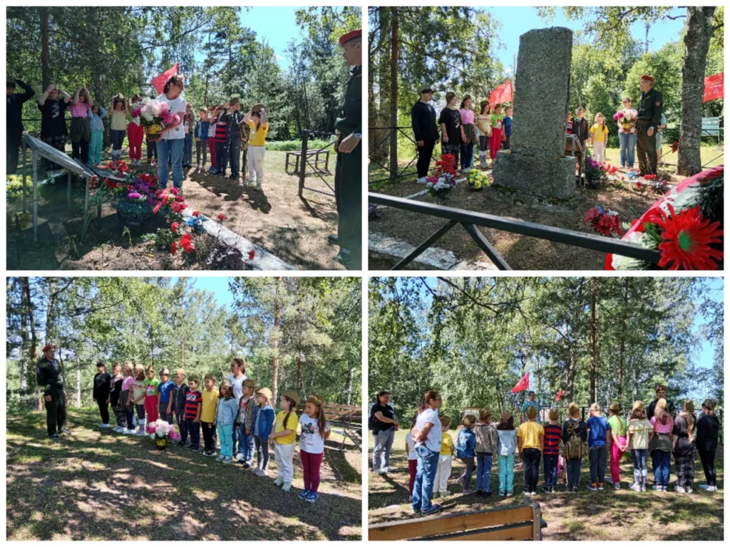 Затем воспитанники приняли участие в памятной акции посвящённой Дню памяти и скорби. Ребята возложили цветы на братском захоронении лётчиков 4 ГИАП, погибших защищая Ленинград, почтили память героев минутой молчания.