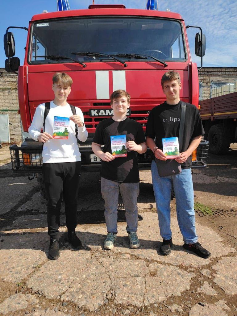 Ребята не только узнали, как и чем тушатся лесные пожары, но и смогли самостоятельно испытать на практике ранцевый лесной огнетушитель, воздуходувку и мотопомпу.