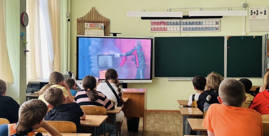 Ребятам продемонстрировали документальный фильм на противопожарную тематику, который наглядно показывал, как неправильная эксплуатация электроприборов или приготовление пищи на газовой плите могут привести к печальным последствиям и возгораниям.