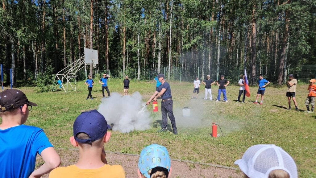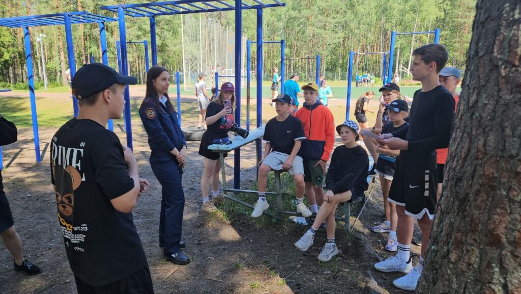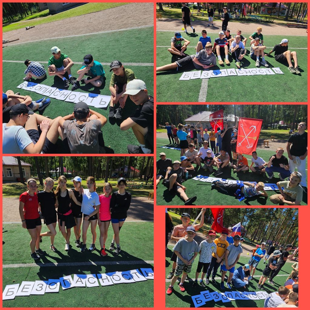 День безопасности проходил в форме соревнования – игры-квеста среди команд детского оздоровительного лагеря. В летний период лагерь принимает спортивные и творческие коллективы Санкт-Петербурга.