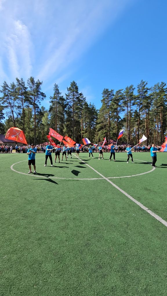 Так как в лагере много спортсменов, открытие нашего мероприятия началось торжественно с поднятия флагов и гимна России. Был организован флешмоб.