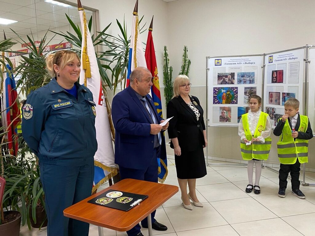 На торжественном мероприятии присутствовали Первый заместитель председателя совета Выборгского местного отделения Всероссийского добровольного пожарного общества Ленинградской области Подшибков Алексей Юрьевич и инженер отделения ОСП и П 26 пожарно-спасательного отряда МЧС России Тарасенкова Дарья Сергеевна.