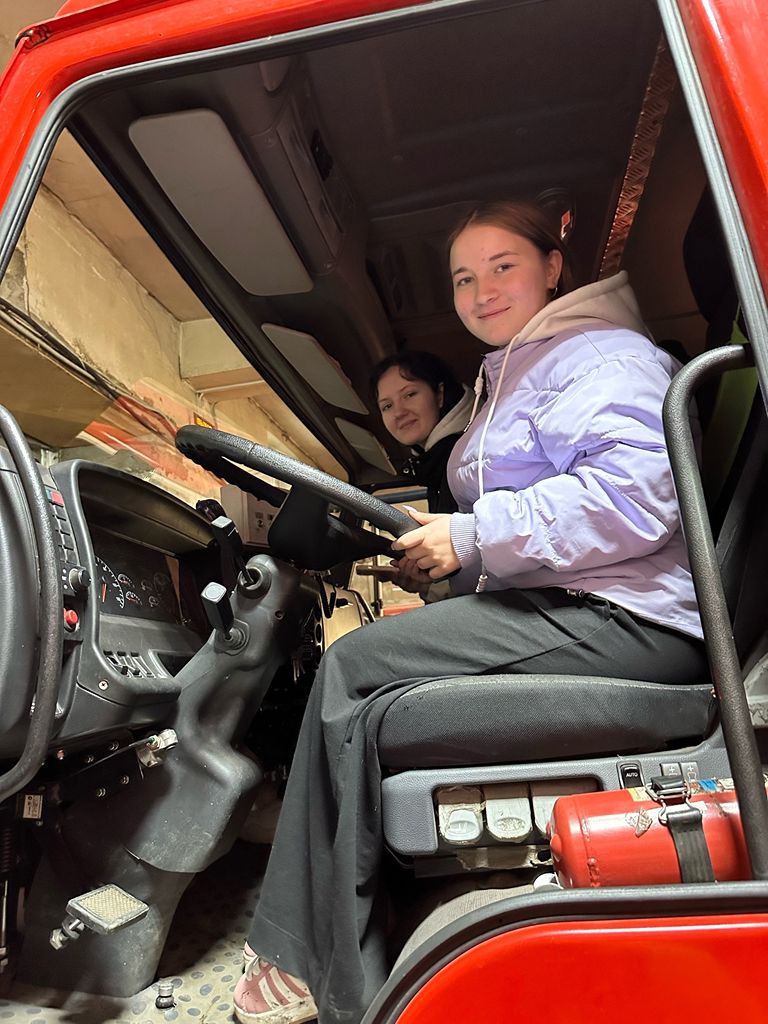 Также ребята не упустили возможность посидеть в кабине пожарной машины.