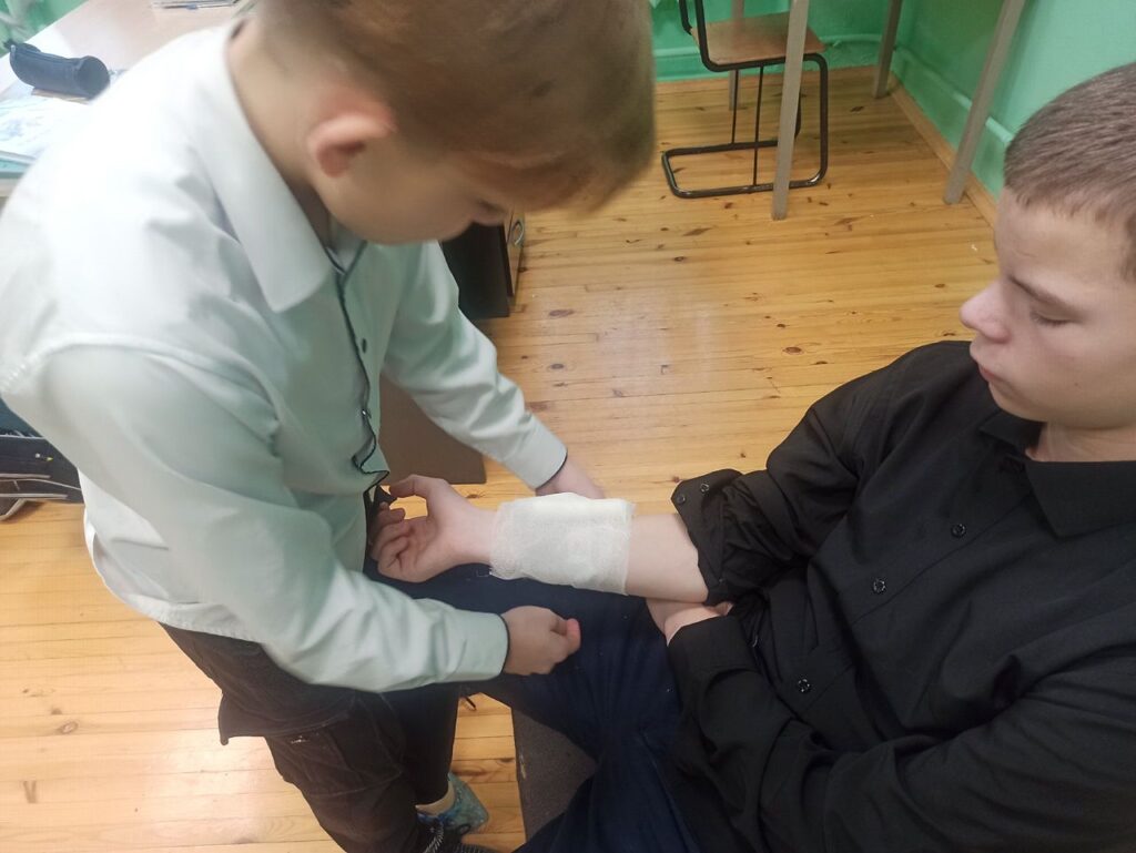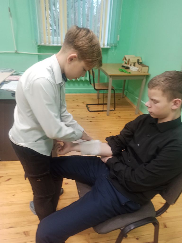 Проведено несколько практических занятий по отработке навыков первой доврачебной помощи при травмах полученных на пожаре, пожарно-строевой подготовке, а также теоретическое занятие на тему «Знаки пожарной безопасности».