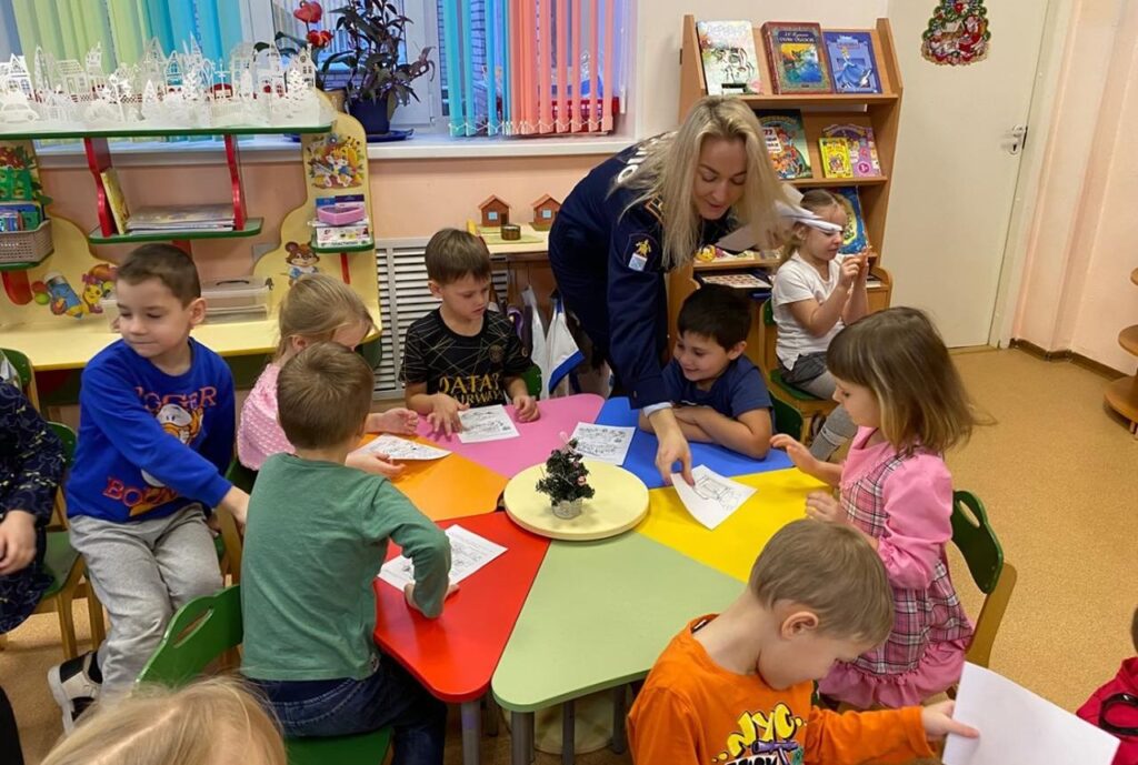 После викторины гостьи вместе с детьми разобрали алгоритм действий в случае возникновения пожара. На примере смоделированных ситуаций ребята учились решать, что делать, если ёлка загорелась, и куда звонить за помощью. Они повторили номер телефона пожарной охраны и отработали последовательность действий при эвакуации.