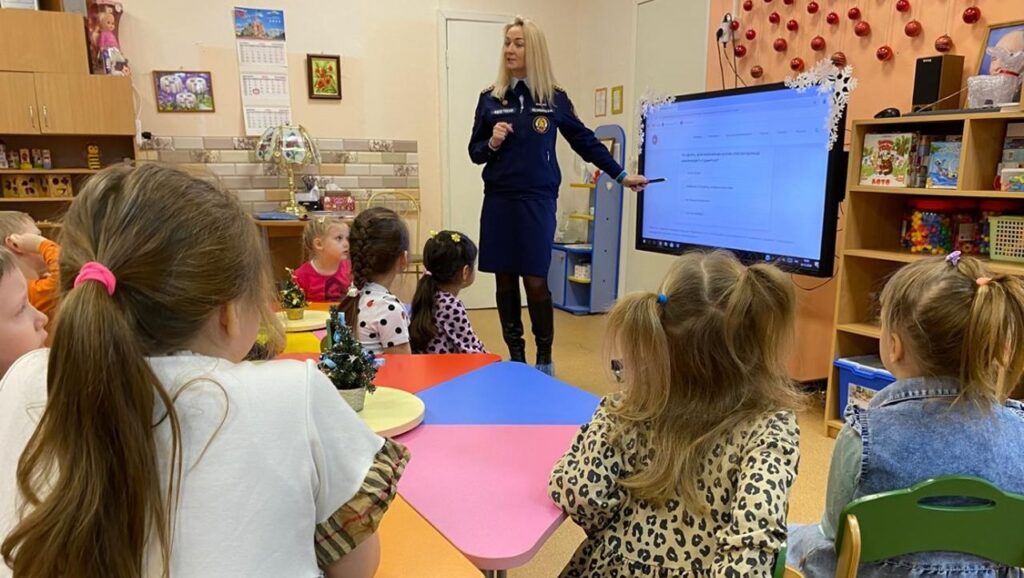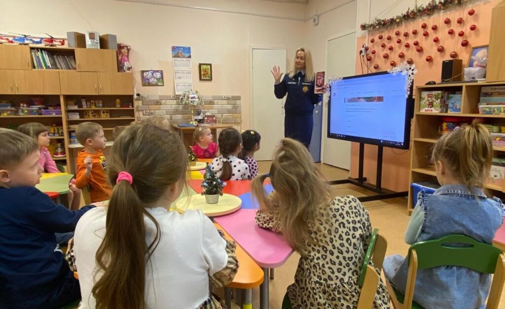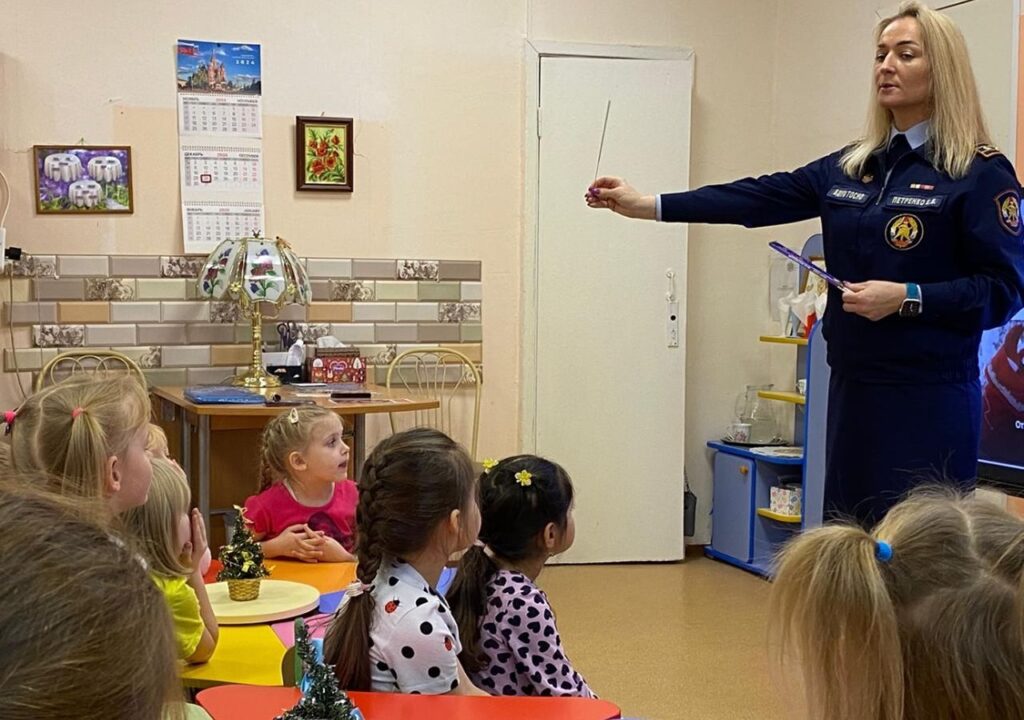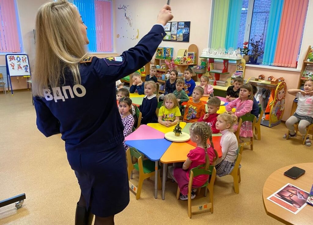 Занятие началось с увлекательной викторины, в рамках которой воспитанники вместе со своими гостями – сотрудниками отдела надзорной деятельности и профилактической работы Тосненского района и местного отделения ВДПО ЛО обсуждали важные вопросы: где безопасно устанавливать ёлку, на что обращать внимание при её украшении, какими игрушками и предметами можно декорировать ёлку, и как правильно пользоваться электрическими гирляндами.