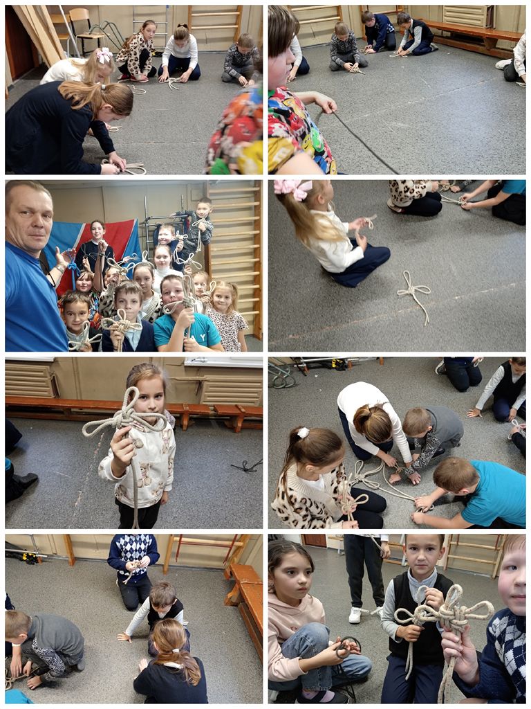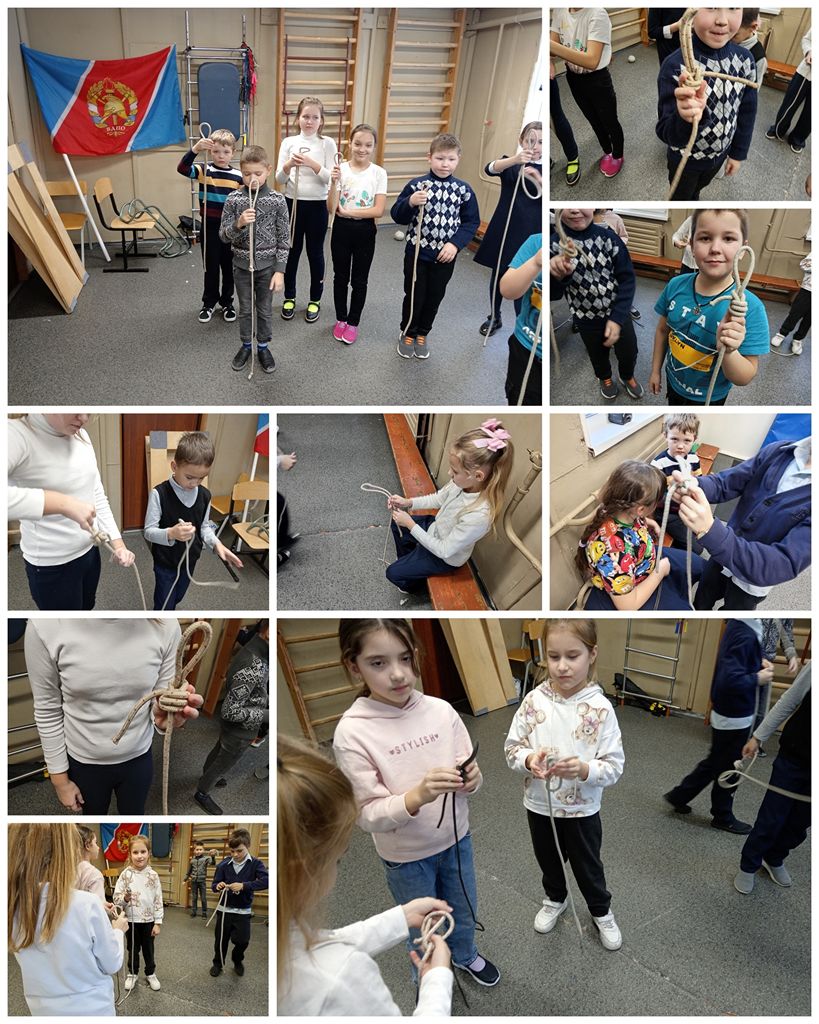 Ребята узнавали завязанный узел, а затем как можно быстрее его вязали. Узнали и без ошибок завязали: