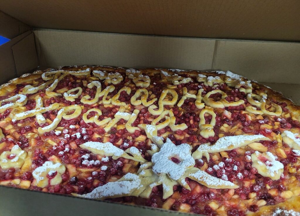 Традиционные пироги с яблоками и брусникой были вручены молодому поколению и артистам культурного учреждения.