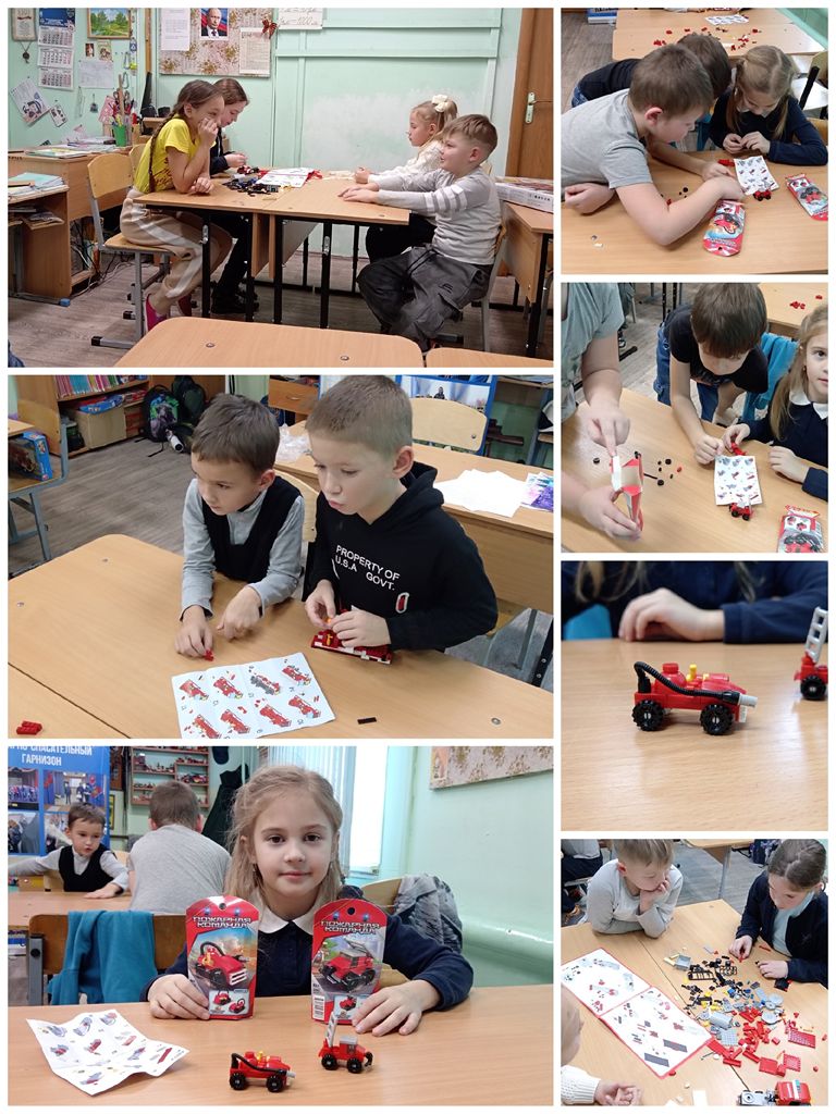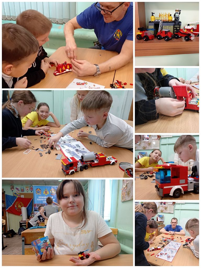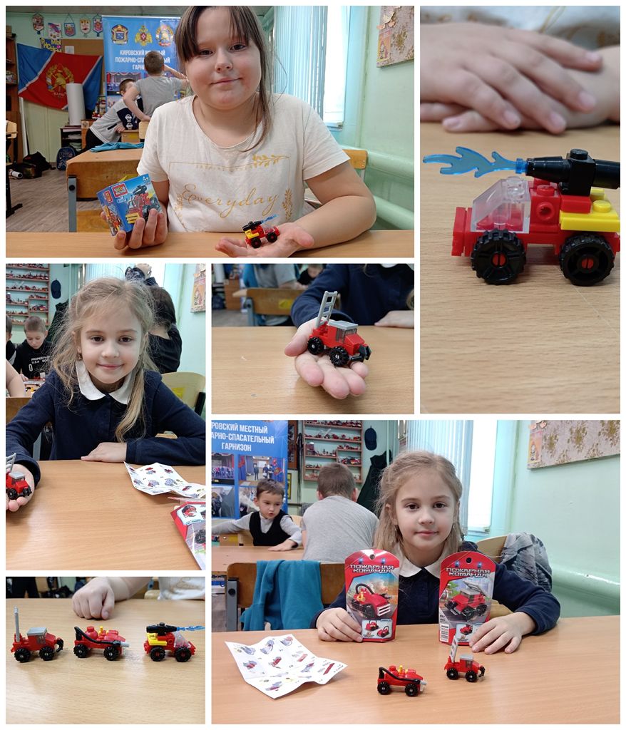 Ребята собирали две, достаточно сложные машины: автолестница и что-то из американского автопарка. Нашлись и мини-пожарные автомобили – для самых маленьких!