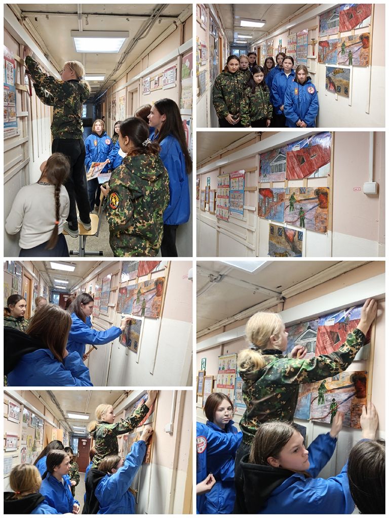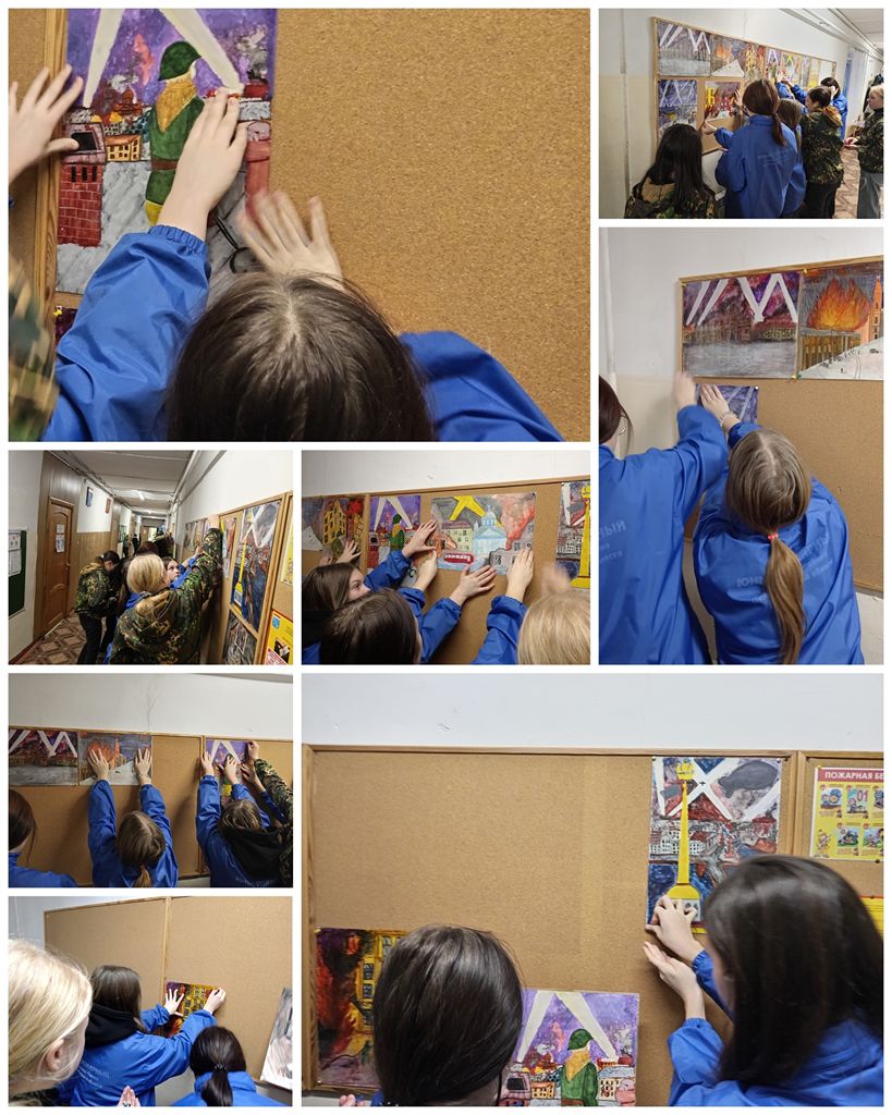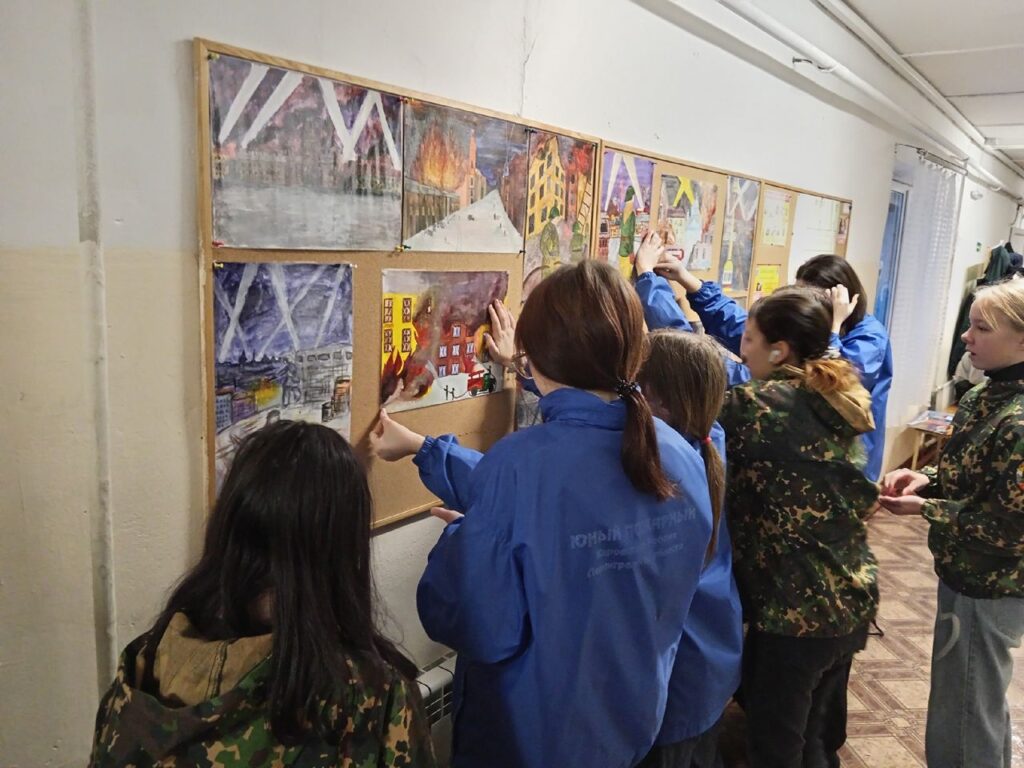 Юные пожарные из ДЮП «Ладога» в уголках пожарной безопасности в зданиях школы оформили выставки рисунков, посвящённых блокаде города Ленинграда. Эти рисунки, в своё время, выполнили наши выпускники.
