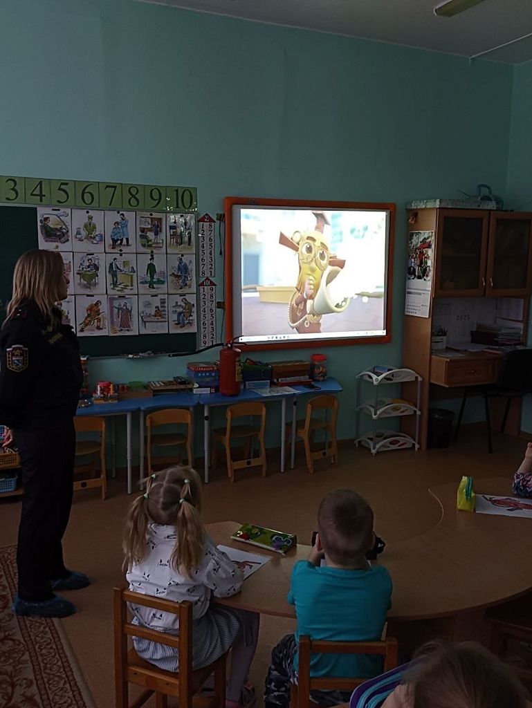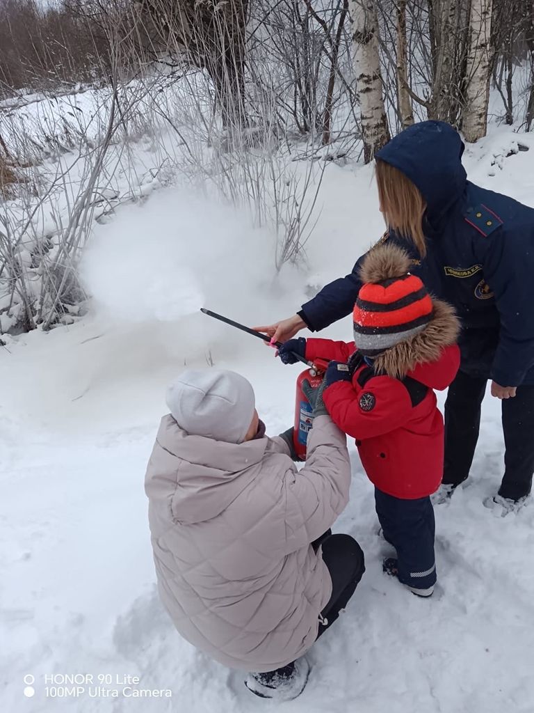 Дети познакомились с внешним видом огнетушителя, узнали как правильно им пользоваться, какие существуют виды огнетушителей и при тушении каких пожаров их используют.