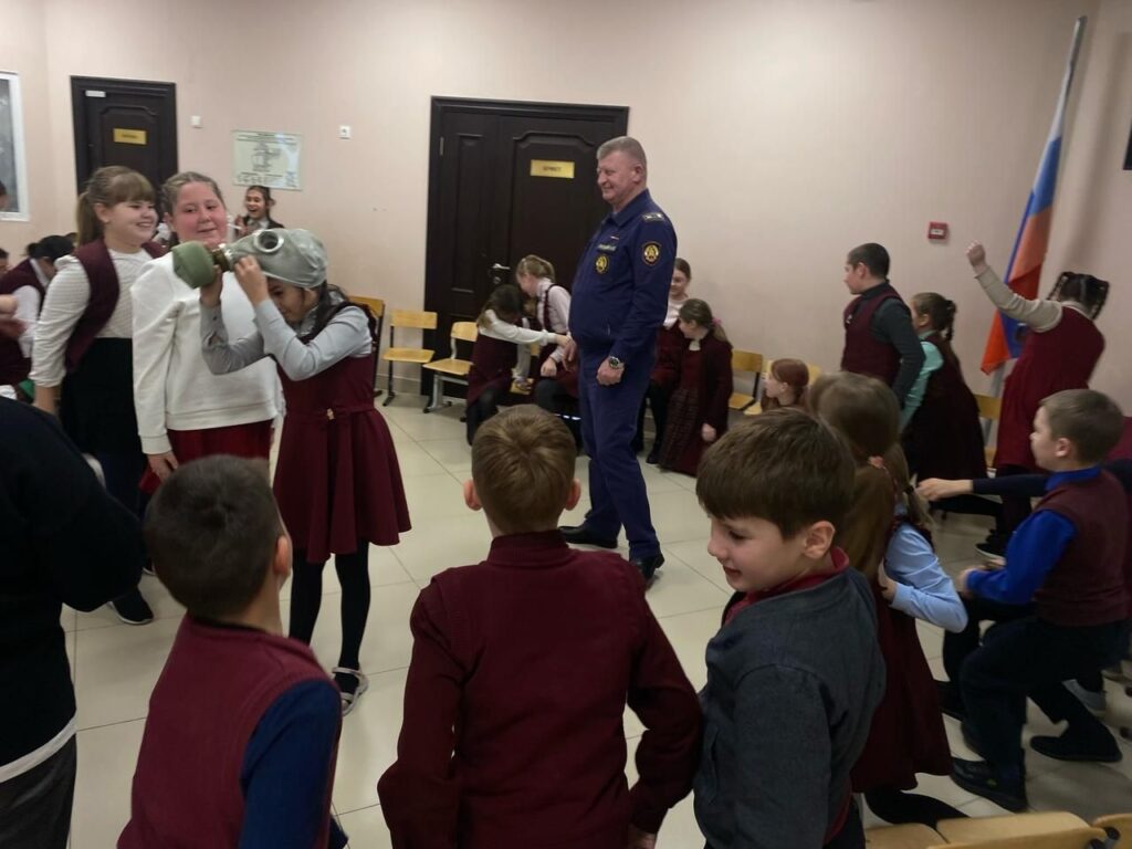 Во время открытого урока с детьми проводились практические отработки правил использования средств индивидуальной защиты.