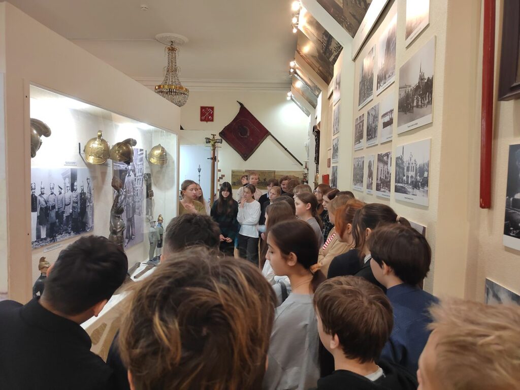 Увлекательный рассказ экскурсовода, познакомил школьников с историей пожарной охраны Петербурга со времени Петра I до наших дней. Ребята с интересом слушали о том, как в былые времена оповещали население о пожаре, как в прошлом столетии для тушения пожара качали воду из первого ручного насоса. Ребята с любопытством рассматривали старые фотографии и красочные макеты конного пожарного обоза, механической лестницы, каланчи пожарной части. Фотографии музея, макеты, экспонаты – всё это помогает понять детям, как опасно играть с огнём.