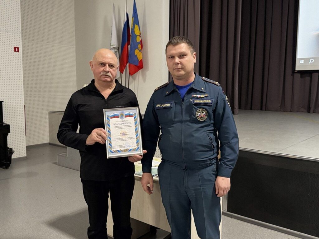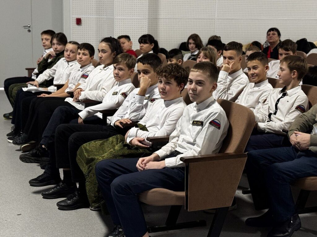 Сейран Георгиевич поделился своими знаниями и опытом, и ответил на вопросы кадетов. Ученики посмотрели небольшой фильм о жизни кадетов. Заместитель начальника отдела надзорной деятельно и профилактической работы Ломоносовского района Михайлов Р.Ю. от начальника ГУ МЧС по Ленинградской области генерал-лейтенанта Дайнеко Е.Г., вручил благодарность заместителю директора школы по безопасности Михаилу Куртееву за активное сотрудничество и поддержку в воспитании будущих защитников Родины.