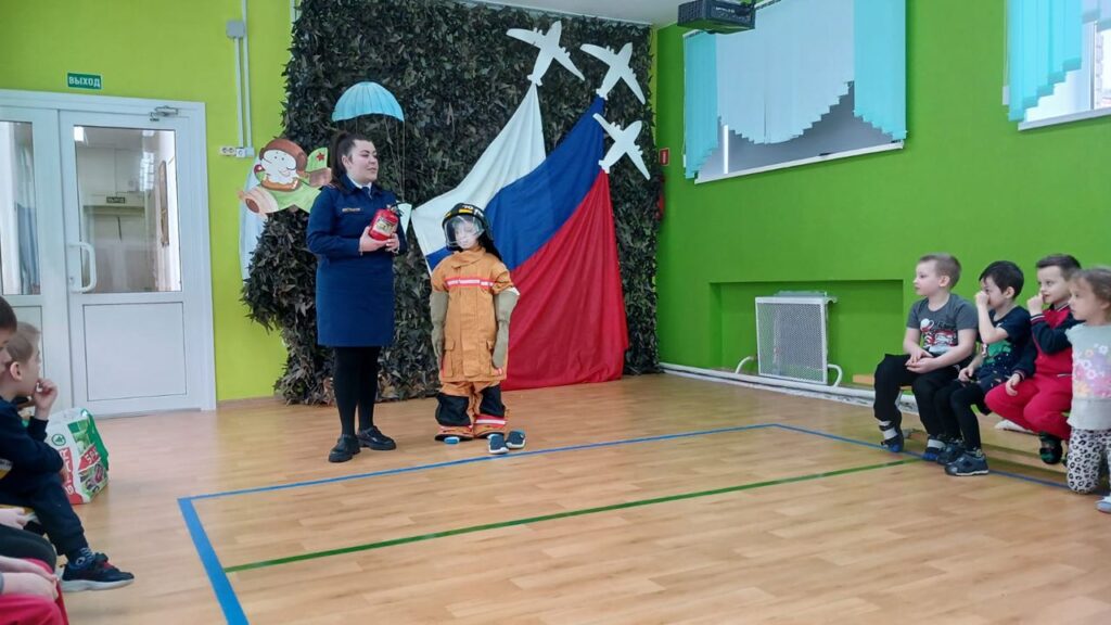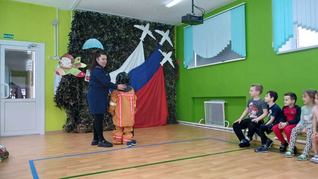 В первой половине инструктор рассказала ребятам о важной роли огня в нашей жизни. Дети узнали, что без огня невозможно было бы готовить пищу, согреваться и освещать помещения. Олеся Владимировна отметила, что раньше огонь был основным источником тепла и света, а теперь, с появлением электричества и обогревательных систем, жизнь стала значительно безопаснее и удобнее, но при этом огонь не потерял своей значимости. Инструктор рассказала о профессии пожарного и продемонстрировала боевую одежду огнеборцев.