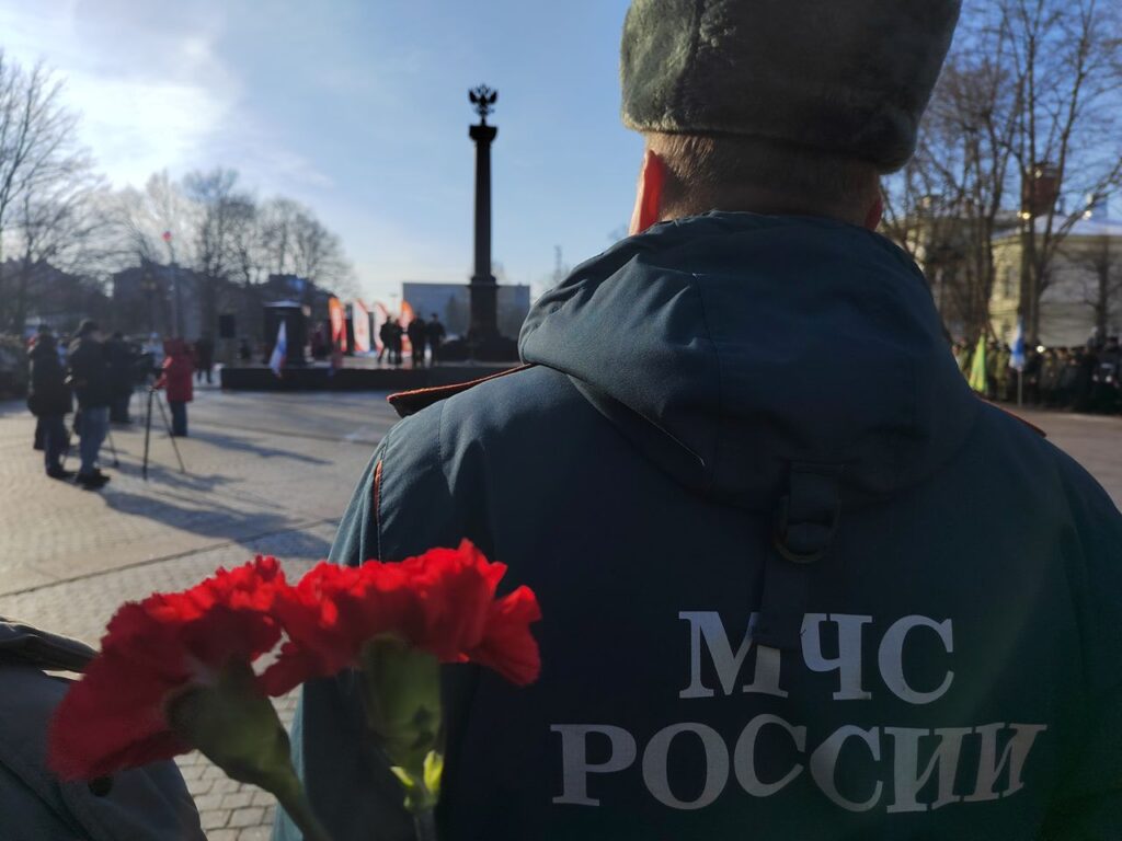 Сотрудники 26 пожарно-спасательного отряда Главного управления МЧС России по Ленинградской области и Выборгского местного отделения Всероссийского добровольного пожарного общества Ленинградской области приняли участие в Памятной акции, посвящённой Дню защитника Отечества «Подвигу жить в веках» на площади Выборгских полков.