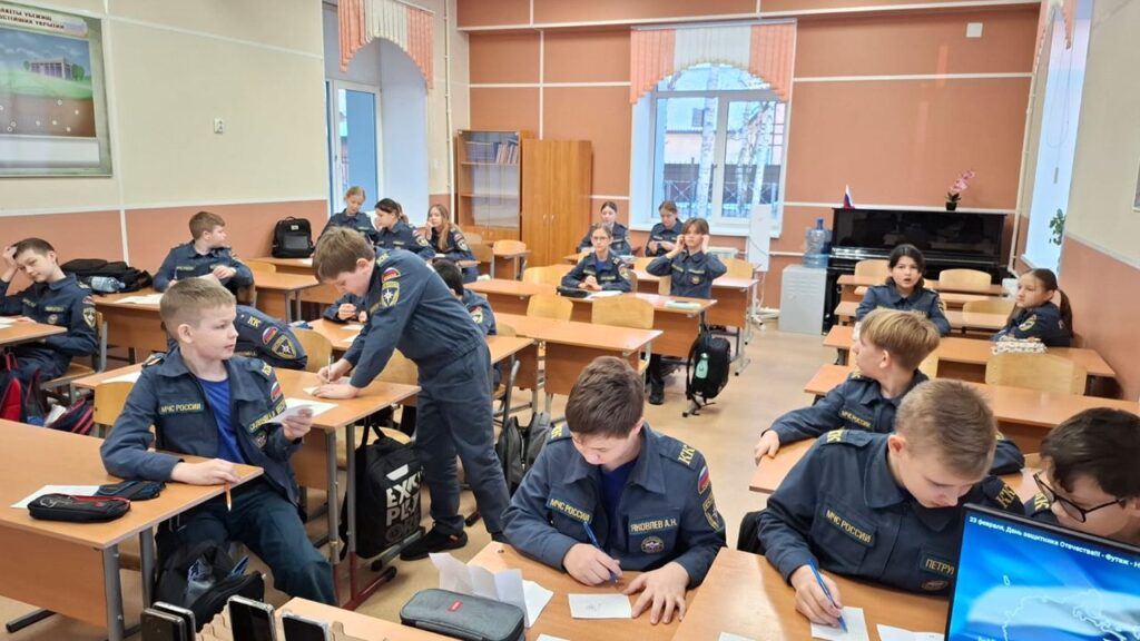 И девочки кадетского класса МЧС МБОУ «СОШ № 7 г. Гатчина» решили поздравить своих мальчиков необычном способом, устроив соревнование-викторину, которую организовали прямо в классе.