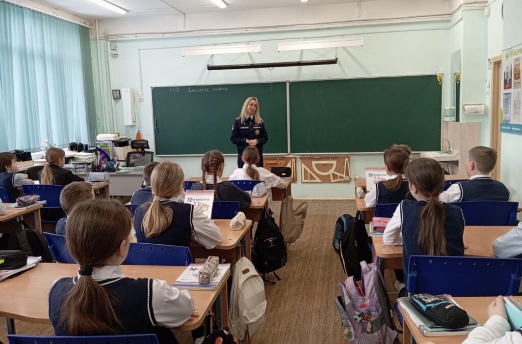 Вторая часть урока была посвящена теме пожарной безопасности, поскольку пожары также являются видом чрезвычайных ситуаций. Сотрудники Тосненского местного отделения ВДПО ЛО и отдела надзорной деятельности и профилактической работы напомнили ученикам базовые правила пожаробезопасного поведения в быту, особенности эксплуатации электрических приборов и меры предосторожности при использовании обогревателей. Особое внимание уделили алгоритму действий в случае возникновения пожара: от первых шагов по тушению очага возгорания до безопасной эвакуации.