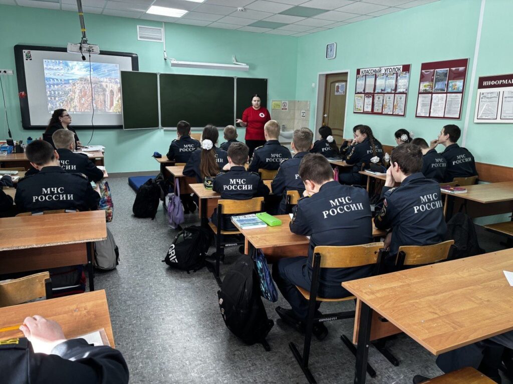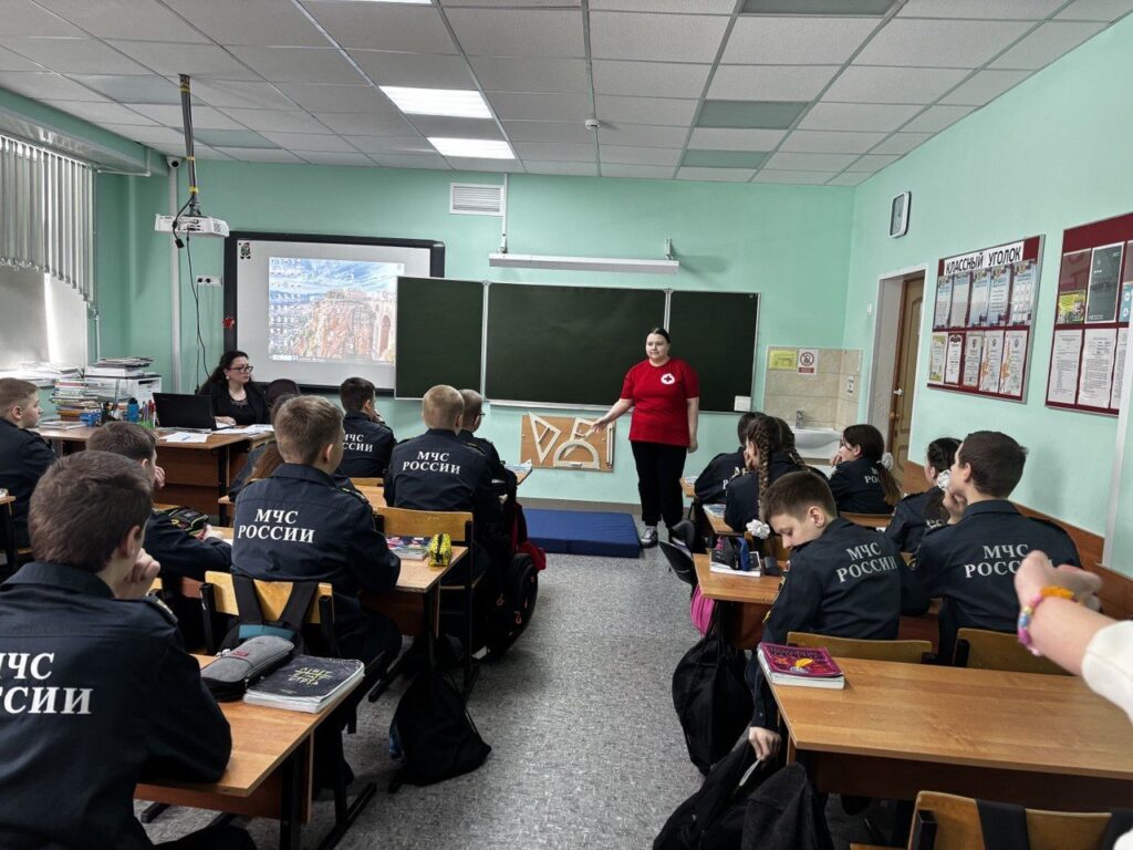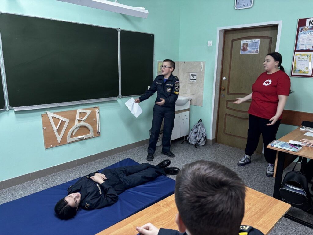 Представители Общероссийского общественно-государственного движения детей и молодёжи «Движение Первых» Волосовского района и Яна Сергеевна Тихомирова инструктор Российского Красного креста провели мастер-класс с учащимися кадетского класса МОУ «Волосовская СОШ № 2».