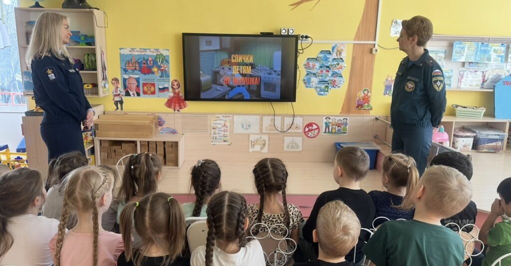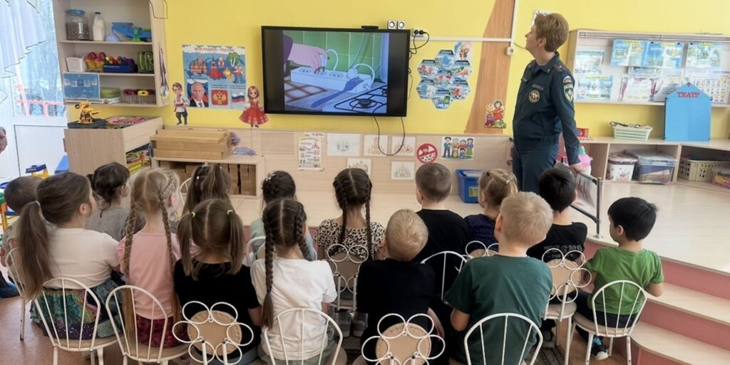 В начале встречи ребятам показали обучающий мультфильм, в котором герои наглядно демонстрировали, как не следует себя вести при пожаре. Дети увидели, к каким серьёзным последствиям могут привести неосторожность, нарушение правил эвакуации и паника.