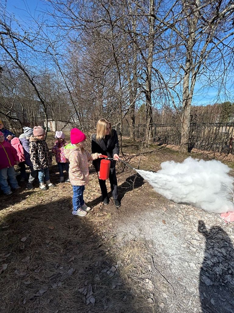 С детьми подготовительных и старших групп проведены профилактические беседы о соблюдении правил пожарной безопасности в быту, о первичных средствах пожаротушения, о действиях при пожаре. А также повторили номера экстренных служб, обсудили основные причины возникновения пожаров, научились правильно пользоваться огнетушителем.