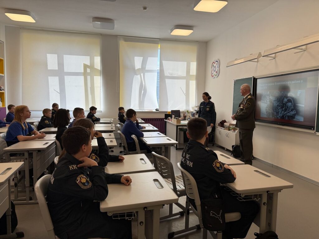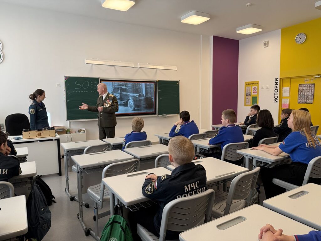 Сегодня, 17 апреля 2025 года сотрудником отдела надзорной деятельности Всеволожского района Князевой Дарьей совместно с ветераном пожарной охраны Миклиным В.Н. был проведен урок мужества для кадетов Муринской школы.