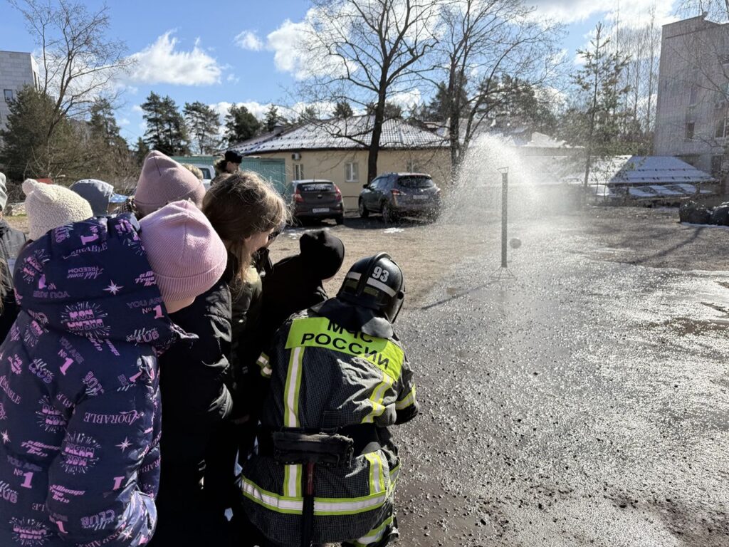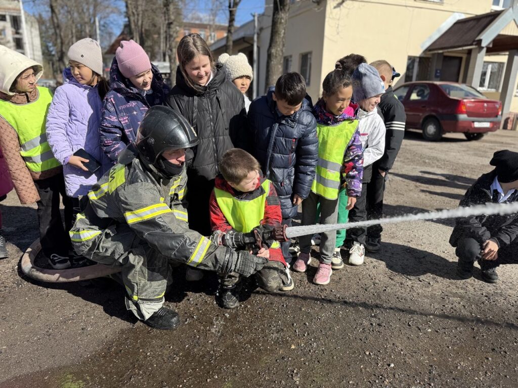 Самые смелые смогли примерить боевую одежду пожарного, поработать ствольщиком и подать воду на тушение условного пожара. Ребята активно принимали участие в беседе, рассказывали истории из жизни, задавали вопросы.