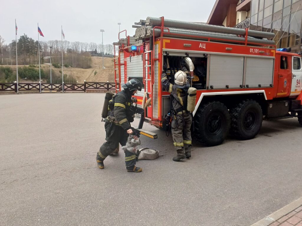 94 пожарно-спасательная часть 15 пожарно-спасательного отряда провела пожарно-тактические учения в здании учебно-тренировочного центра «Кавголово», в котором круглогодично занимаются спортсмены-лыжники.