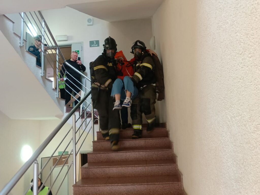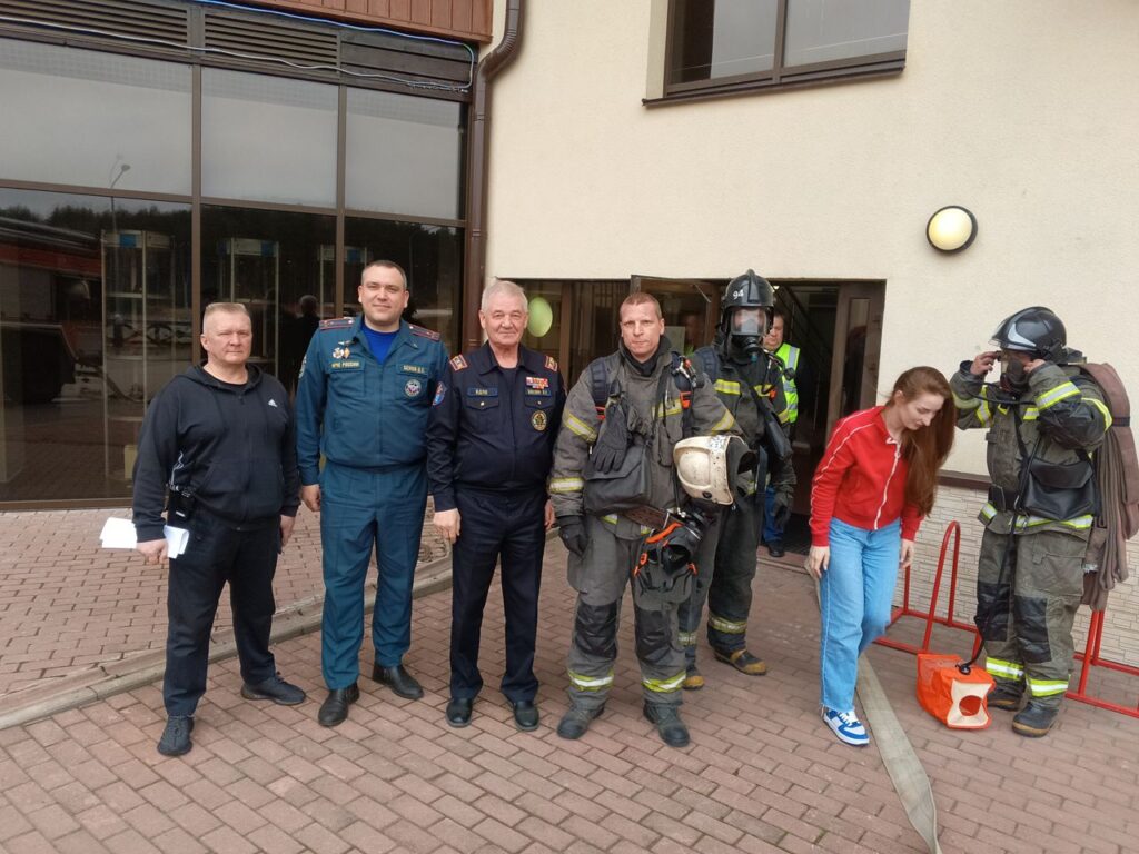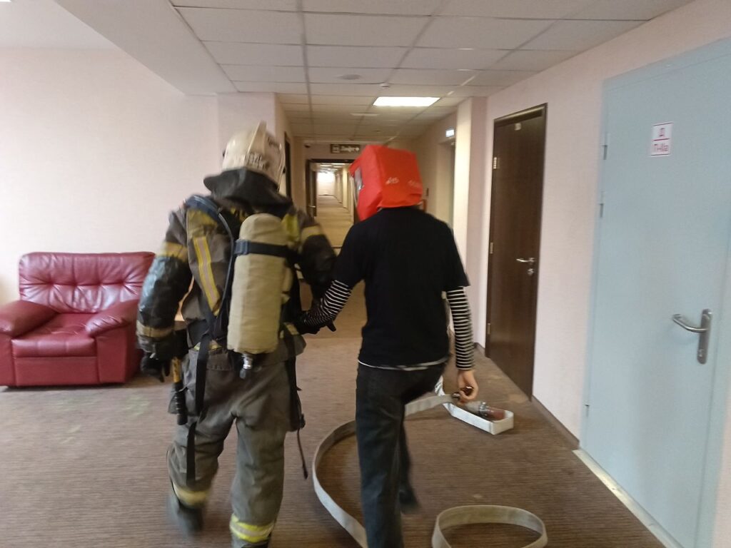По замыслу учений возгорание произошло в гостиничном номере третьего этажа. По сработавшей пожарной сигнализации дежурным персоналом Центра была организована эвакуация гостей и персонала. Организовано тушение пожара первичными средствами пожаротушения и водой из внутреннего пожарного водопровода. Сотрудники охраны обеспечили встречу и доклад начальнику караула первого прибывшего подразделения пожарной охраны.