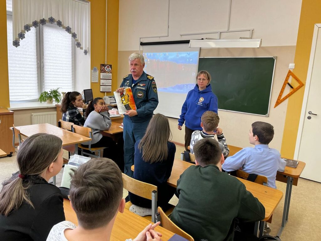 В рамках празднования Дня пожарной охраны России представители отдела надзорной деятельности и профилактической работы Приозерского района, сотрудник социально-ориентированной деятельности Приозерского местного отделения ВДПО ЛО и государственный инспектор по маломерным судам отделения ГИМС провели незабываемый урок мужества для учеников МОУ «Кузнеченская СОШ».