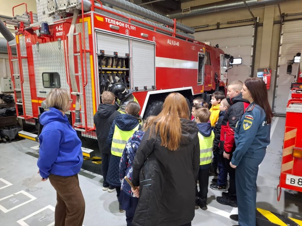 В процессе экскурсии сотрудники познакомили детей с особенностями работы пожарной части. Ребята с интересом осмотрели технику и оборудование. Дежурный рассказал как проходит сигнал о тревоге и действие пожарного экипажа.