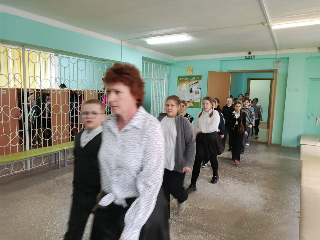 Как только сработала сигнализация, школьники, учителя без паники и суеты покинули здание школы через ближайшие выходы из здания. Действуя строго по инструкции, учителя организовали выход школьников. Далее прошла проверка всех «спасенных» из здания школы.
