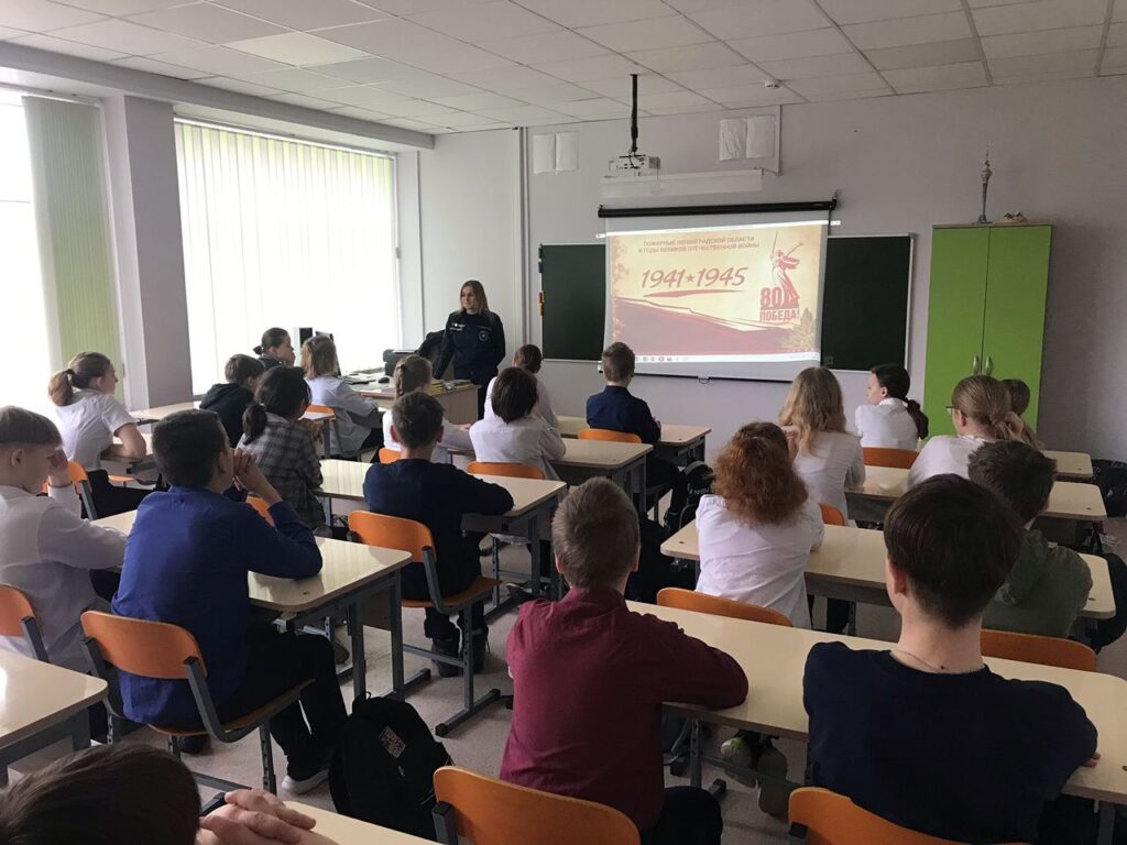 В ходе уроков, для ребят была продемонстрирована презентация «Пожарные Ленинградской области в годы Великой Отечественной Войны».