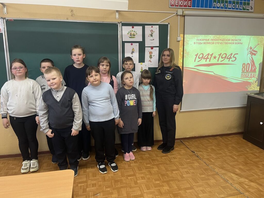 В преддверии празднования 80-й годовщины Победы в Великой Отечественной войне 1941-1945 годов и в целях сохранения исторической памяти и развития историко-культурного наследия членом ВДПО ЛО, инструктором противопожарной профилактики отряда Государственной противопожарной службы Волховского района 148 пожарной части Чесноковой К.В. проведены «Уроки Мужества» в МОБУ «Сясьстройская СОШ № 1», МОБУ «Потанинская ООШ» для ДЮП «Огоньки», МОБУ «Селивановская ООШ» для ДЮП «Искорки».