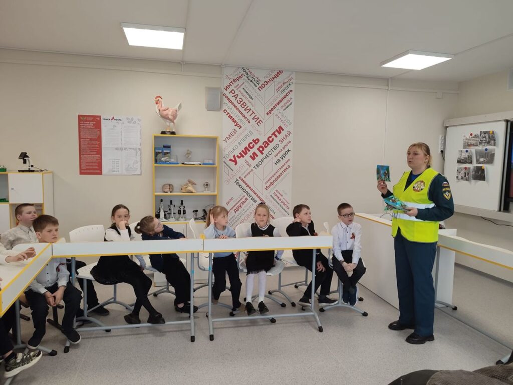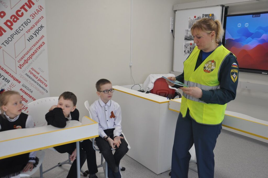 В ходе урока сотрудники рассмотрели с учащимися такие вопросы как безопасный отдых в летний период, правила поведения в природной среде, в том числе на водных объектах, действия при возникновении или угрозе возникновения чрезвычайных ситуаций природного и техногенного характера.