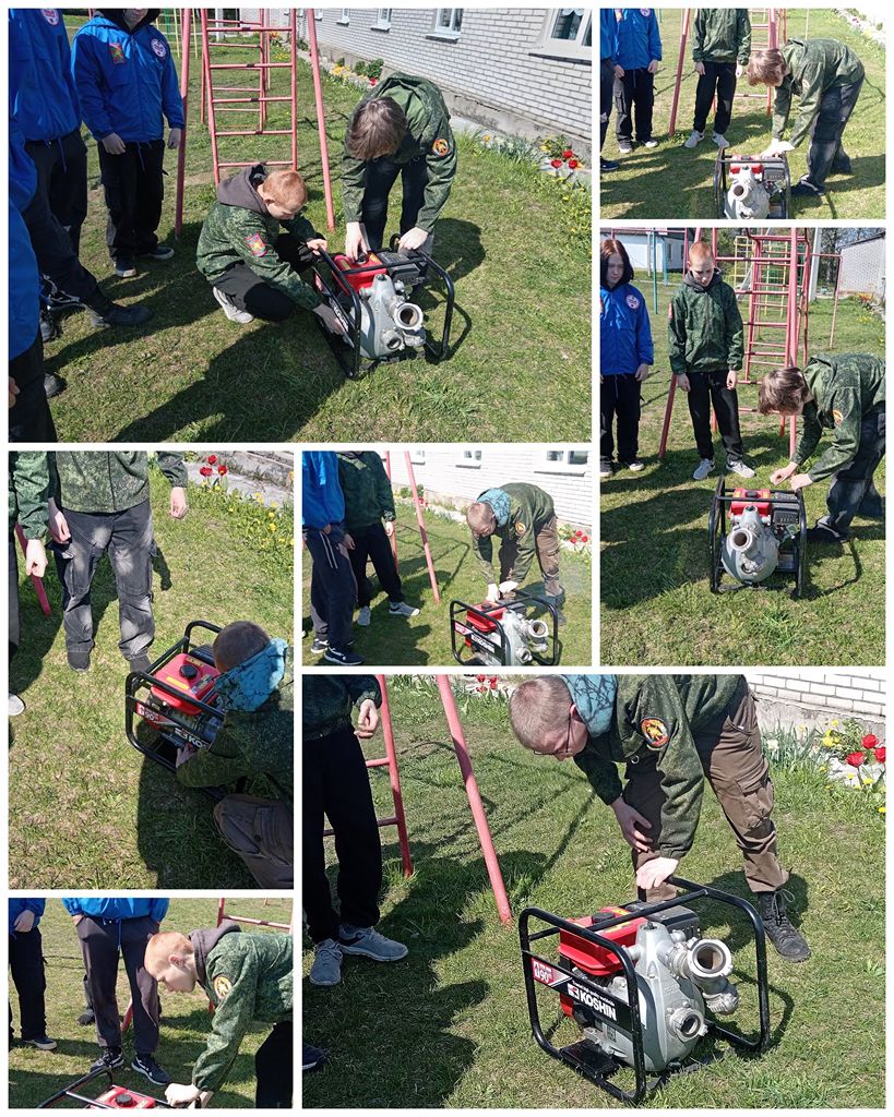 Парни проверили работу мотопомпы, состояние рукавов и другого ПТВ.