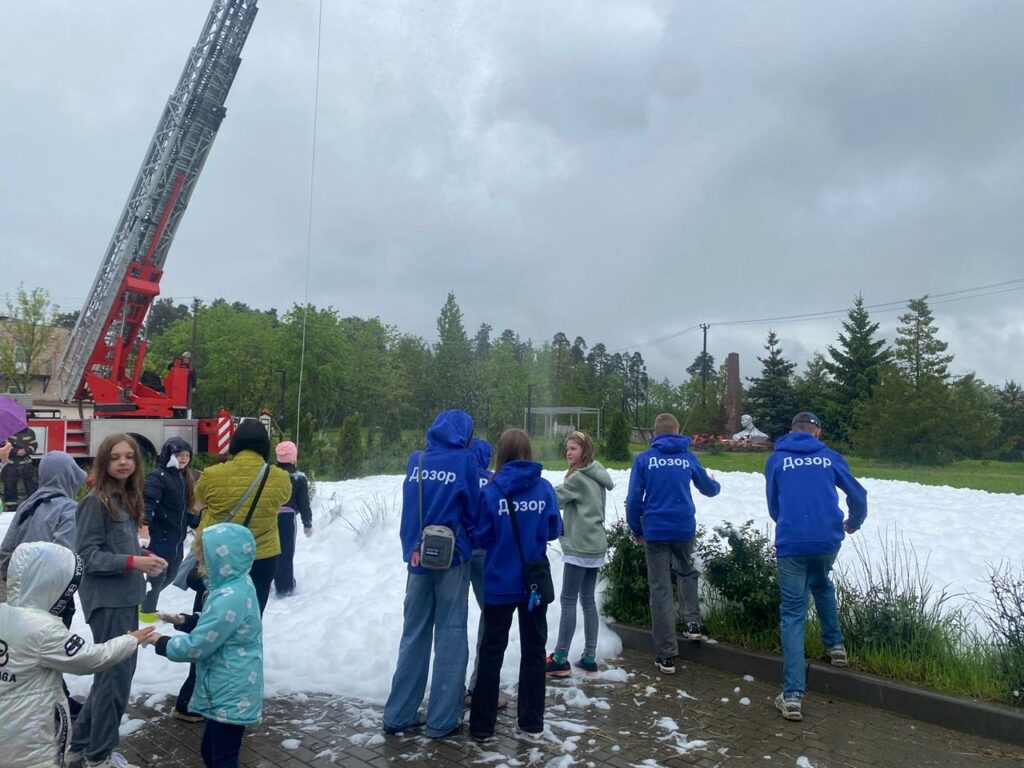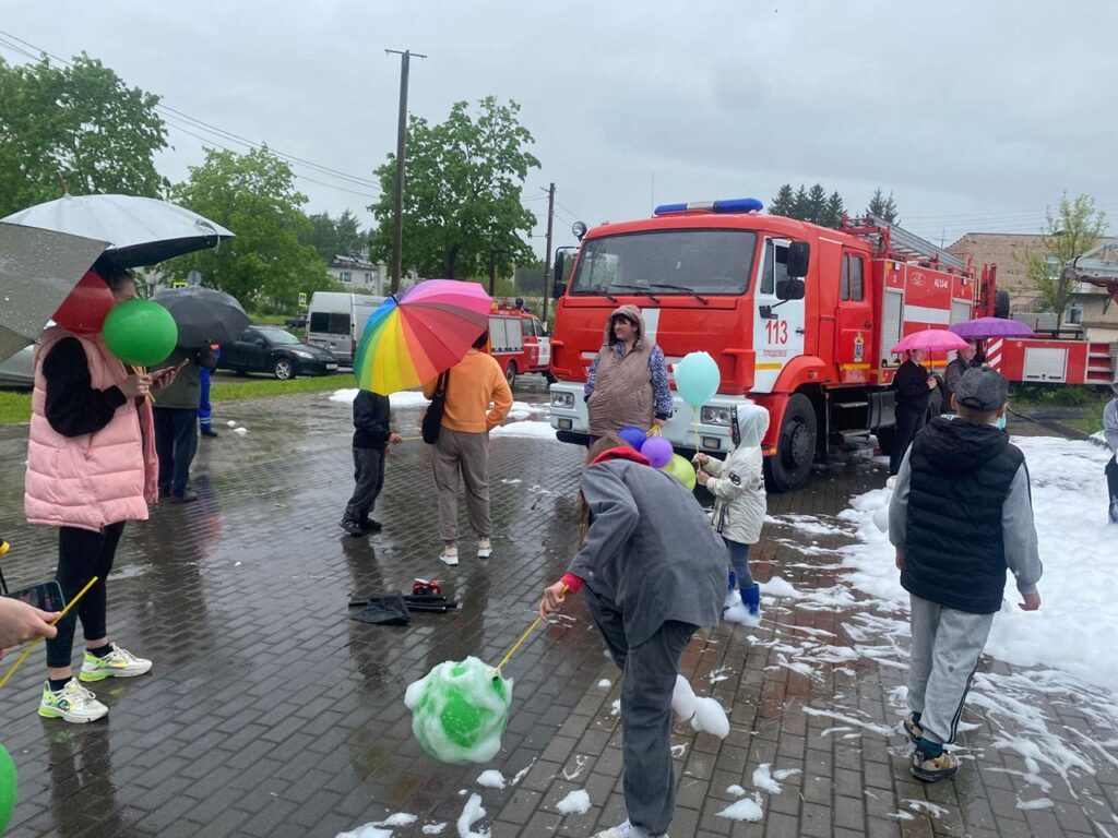 Кульминацией праздника стала зажигательная пенная вечеринка, организованная пожарной частью № 113. Дети были в восторге от возможности потанцевать в облаках пены, веселясь и смеясь от души.